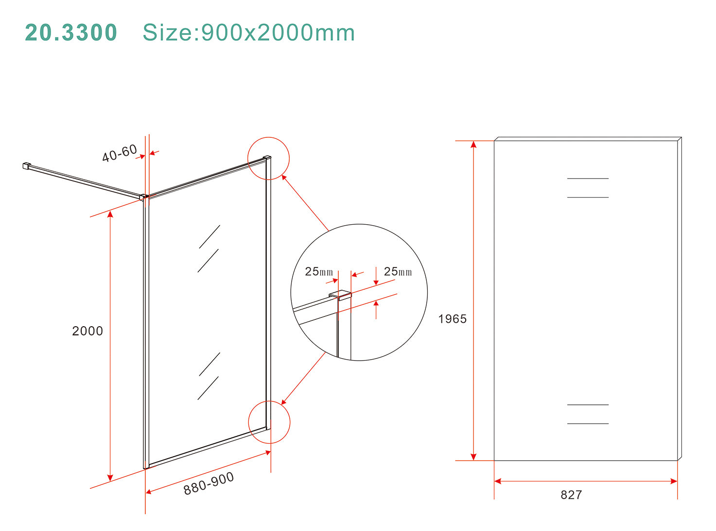 Square inloopdouche 900 x 2000 x 8 mm nano helder glas/geborsteld messing