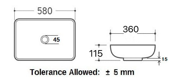 Karé waskom rechthoekig 58 x 36 x 11,5 cm keramiek mat wit