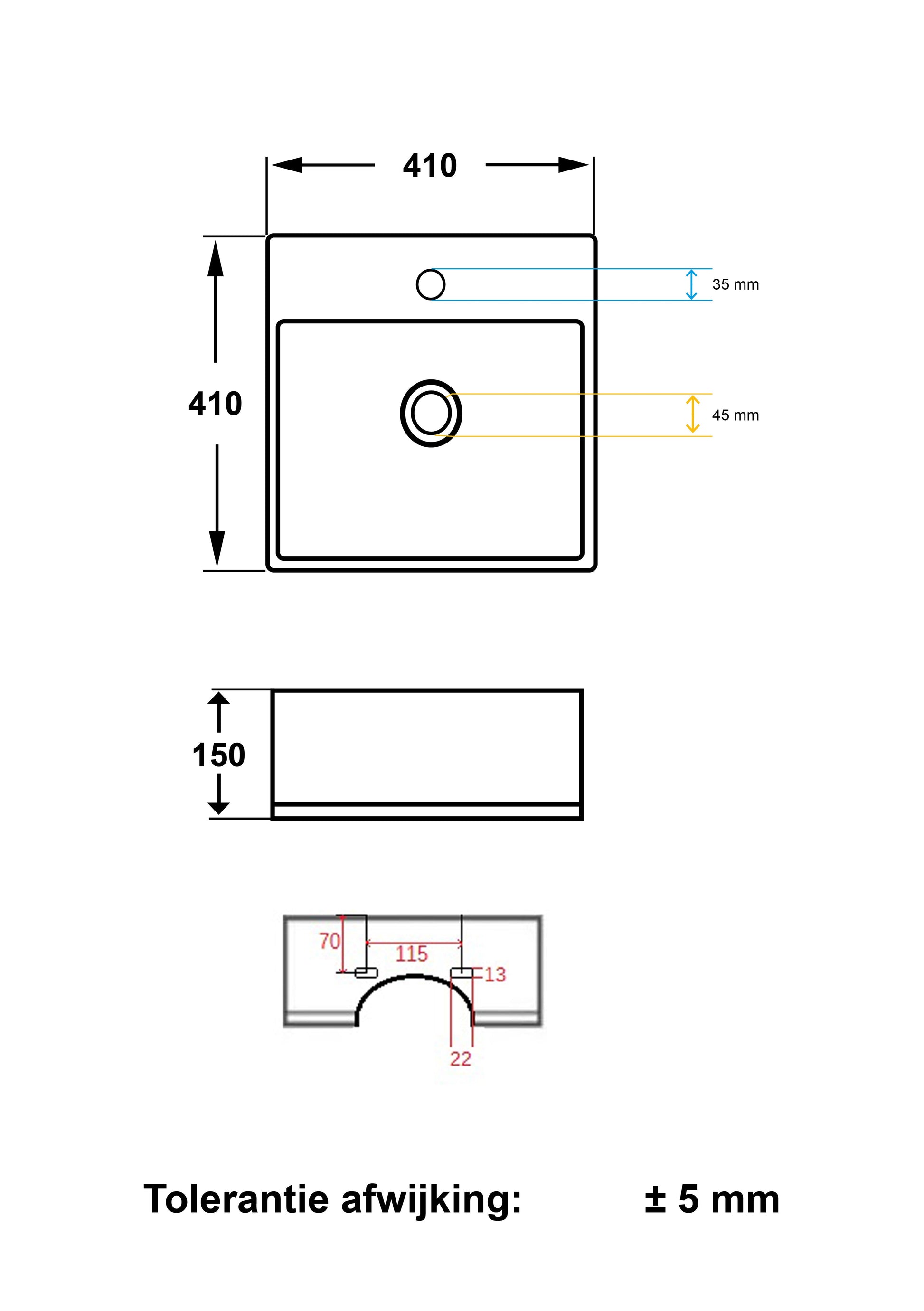 Larx waskom vierkant 41 x 41 x 15 cm keramiek glans wit