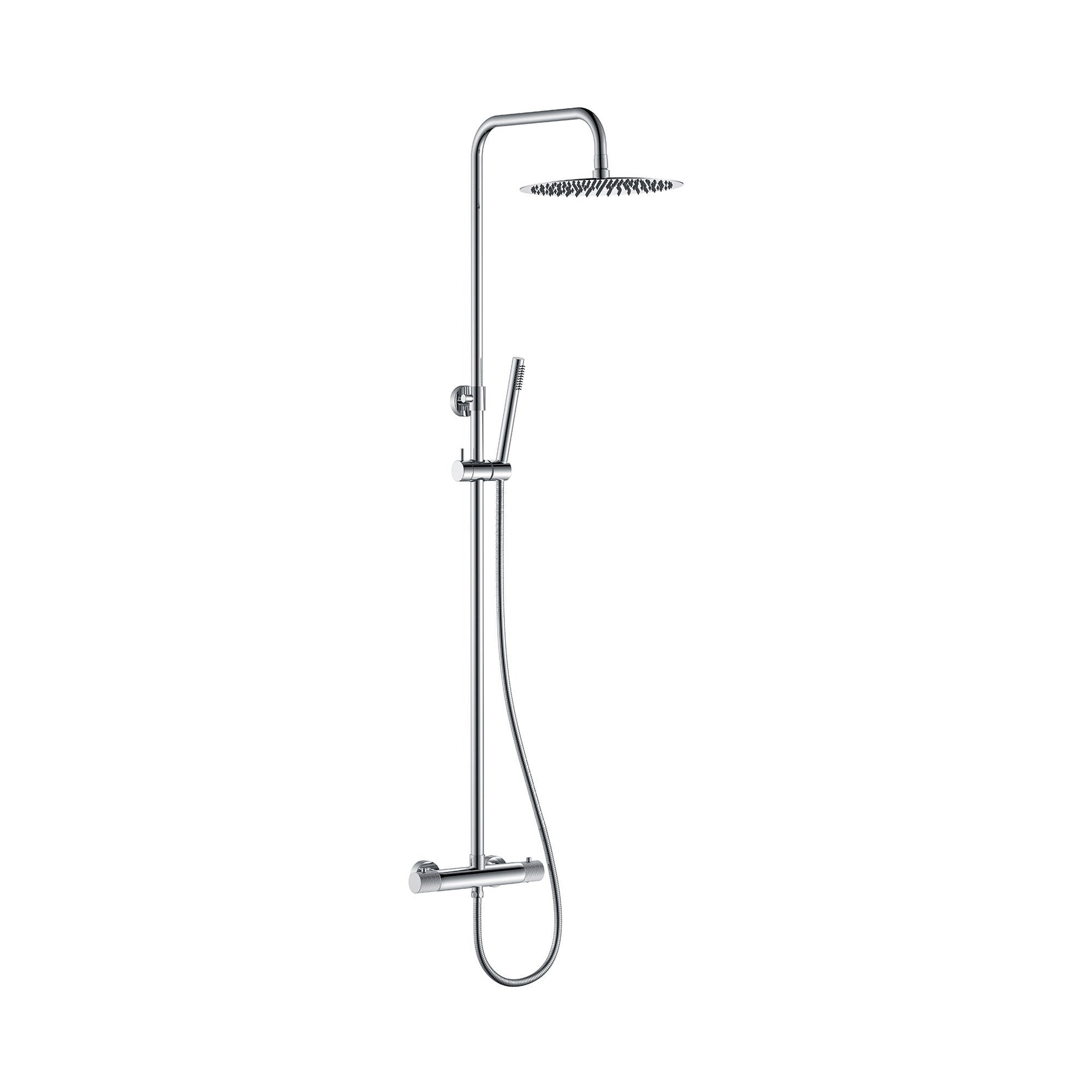 Deze opbouw regendoucheset is van het merk Wiesbaden en behoort tot de Ribbd serie. Het prachtige regendouchesysteem is gemaakt van messing en heeft een chromen afwerking. De set bestaat uit een in hoogte verstelbare regendouche en een handdouche. De afmetingen van de hoofddouche zijn 25 cm. Op de set zit een fabrieksgarantie van 2 jaar.