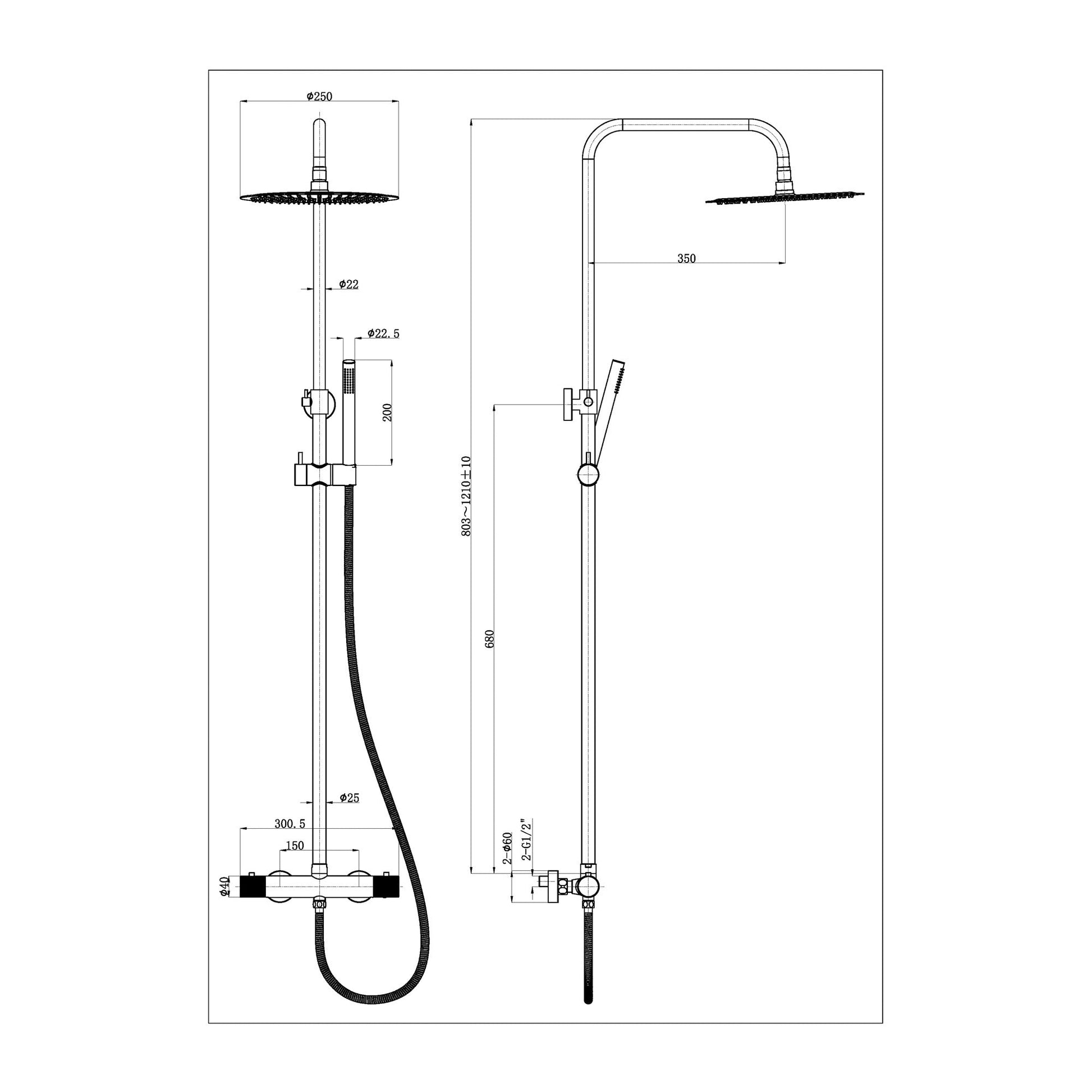 • Slangafsluiting: Afmetingen geribbelde hoofddouche: 25 cm