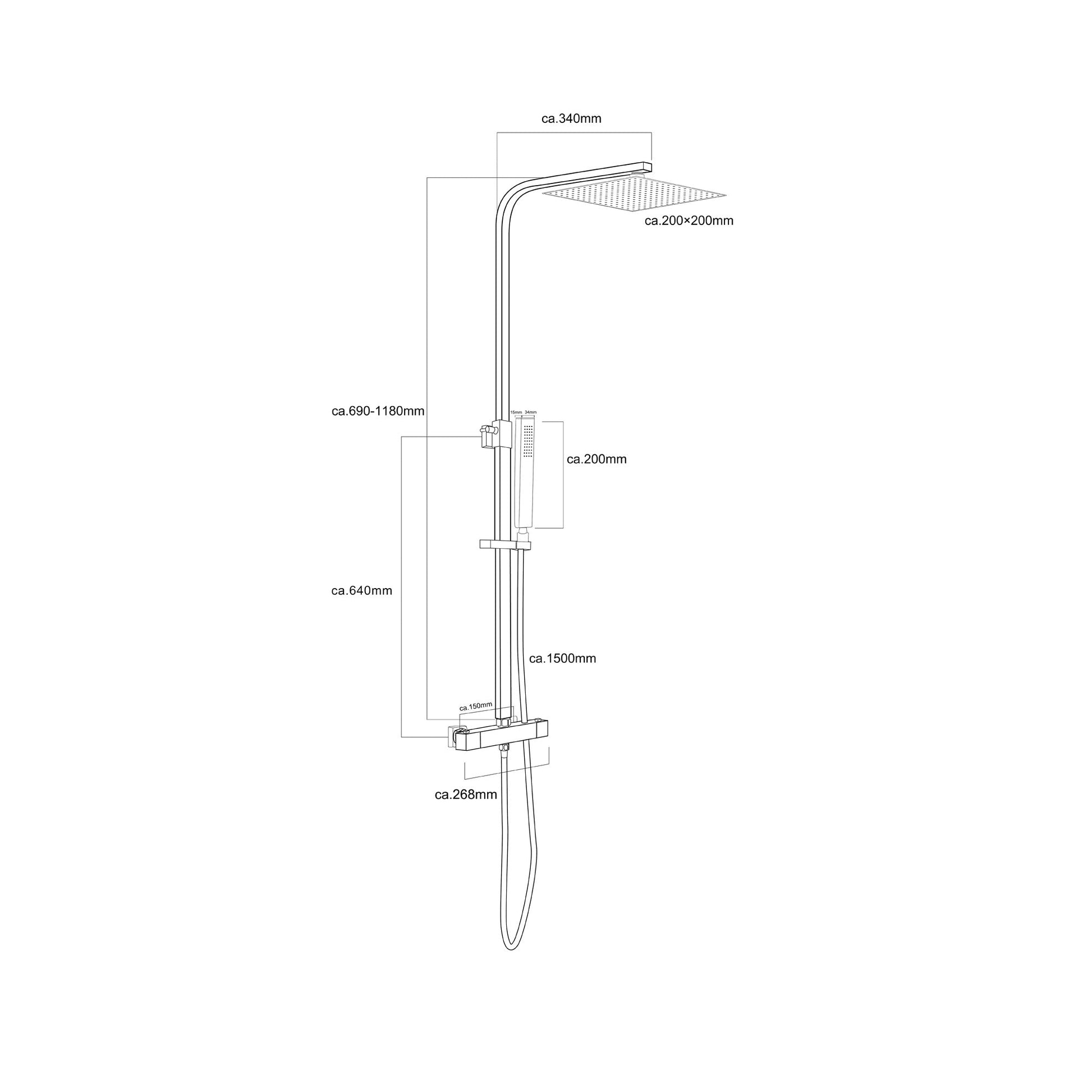 Rombo Eco Twenty Regendoucheset Wiesbaden Opbouw met Thermostaatkraan 20Cm in Chroom