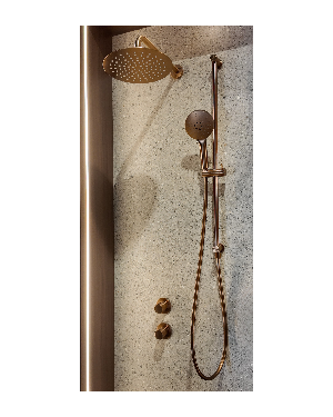 Regendoucheset inbouwthermostaatkraan met 2-weg stop-omstel Symmetry. wandarm. R25cmSL. glijstang met uitlaat. doucheslang 150cm en 3-standen handdouche
