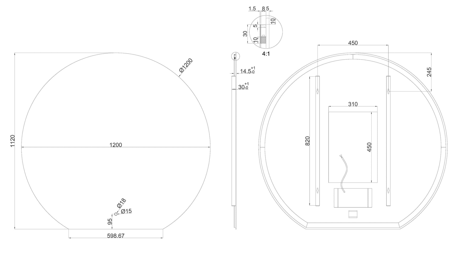 Tramonto Ronde Badkamerspiegel Wiesbaden met LED Dimbaar en Spiegelverwarming 120 X 112 X 0,3 Cm