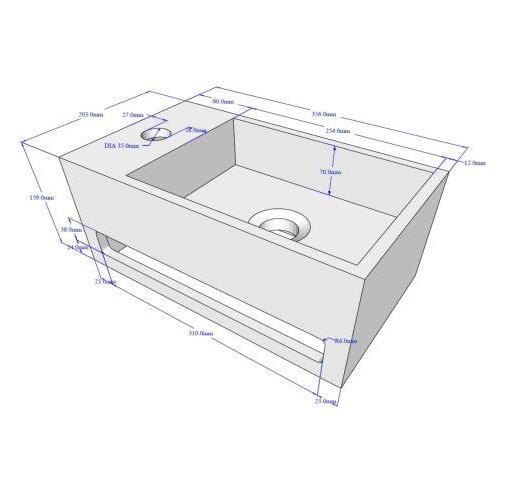 Solid Surface Fontein met Handdoekhouder Wiesbaden 35,6X20,3X15,9 Cm (Kraangat Links of Rechts)