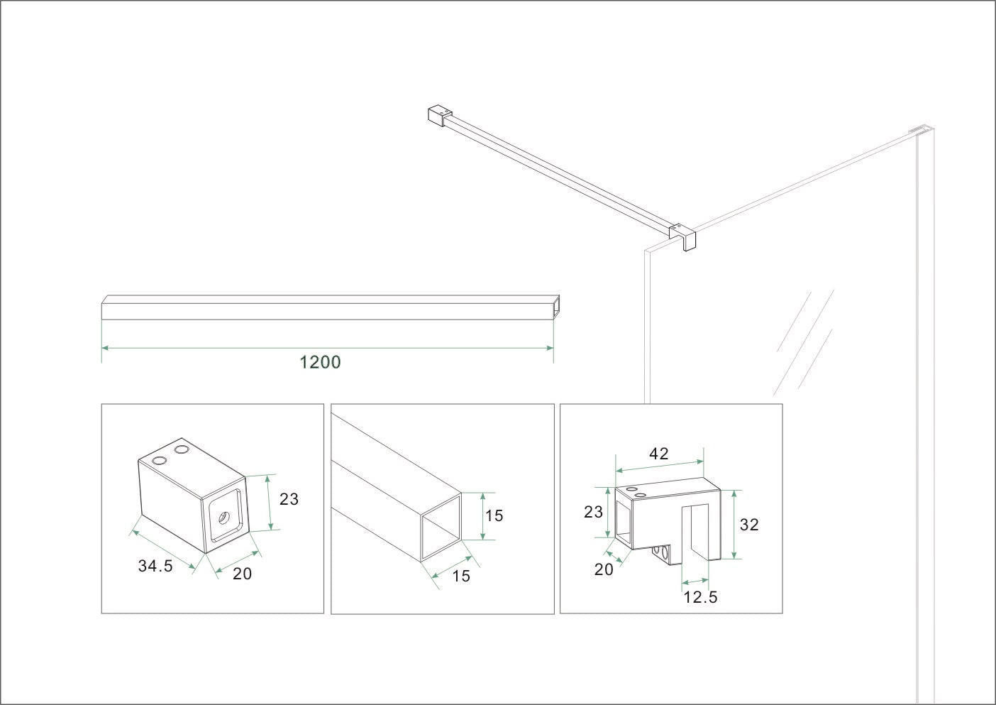De twee stabilisatiestangen van het merk Wiesbaden zijn ontworpen voor een vrijstaande inloopdouche. De glas- en wandkoppeling zijn onafhankelijk van de stang te monteren. Vervolgens kunt u de stangen op de gewenste afmetingen afzagen en de koppeling opnieuw opbouwen.