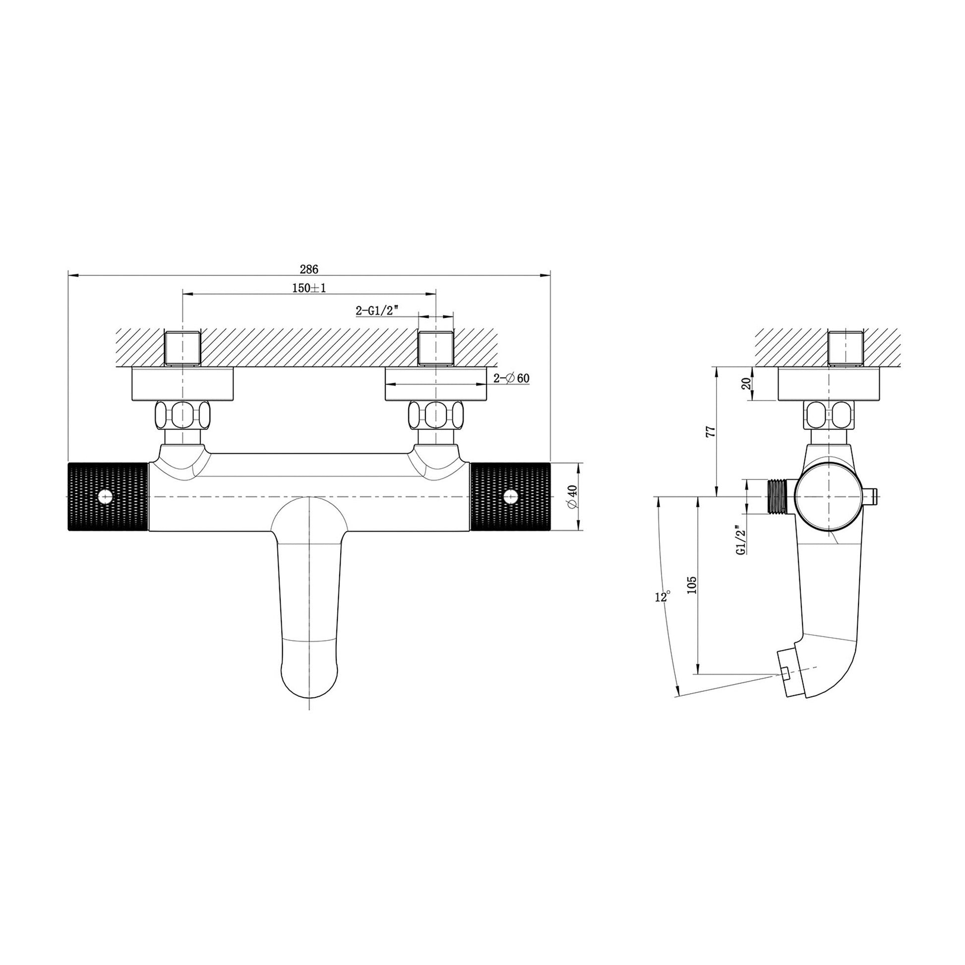 Ribbd Badmengkraan Thermostatisch Wiesbaden met 15 cm Hartafstand Mat Zwart