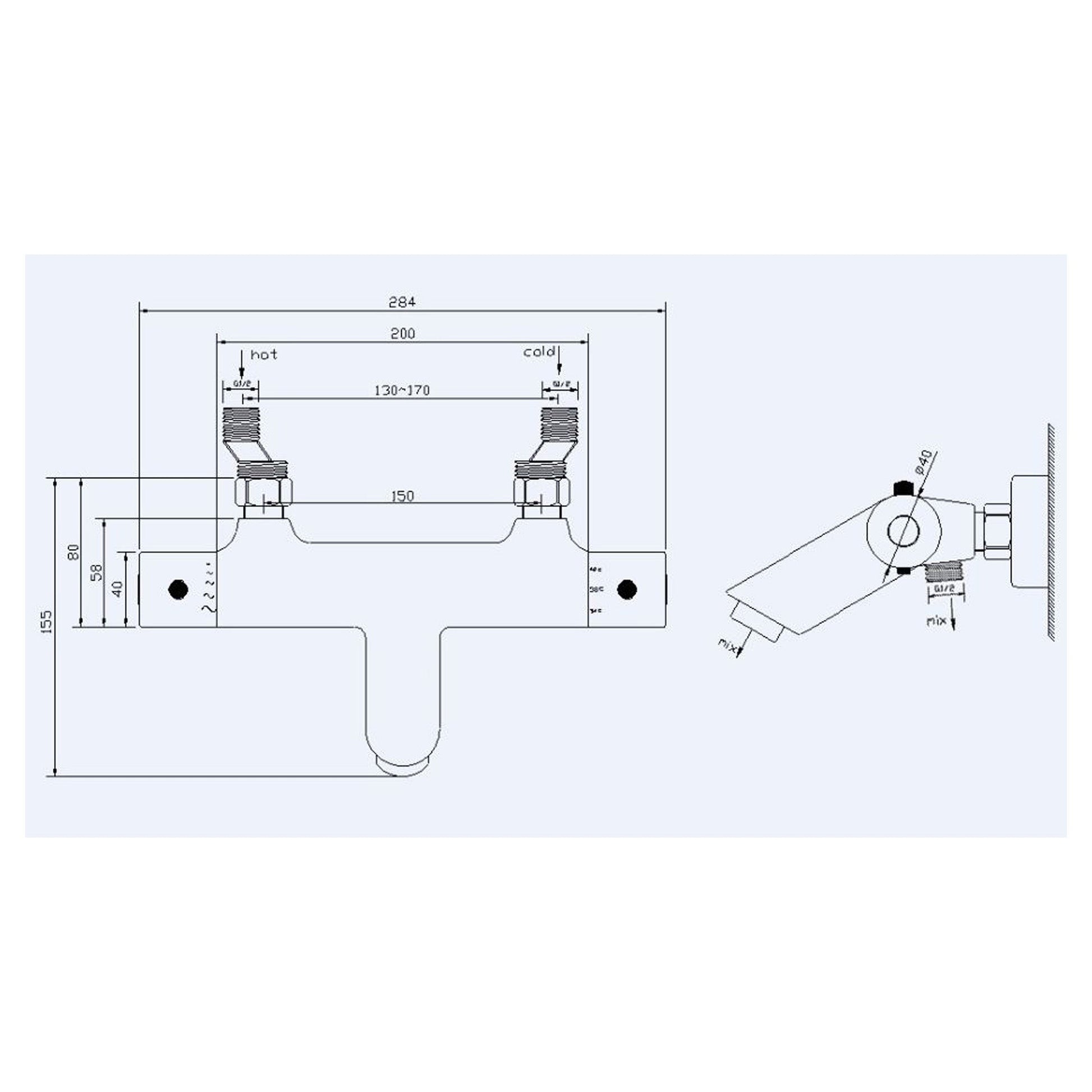 Specificaties Thermostaatkraan Wiesbaden Rio badkraan geborsteld staal
