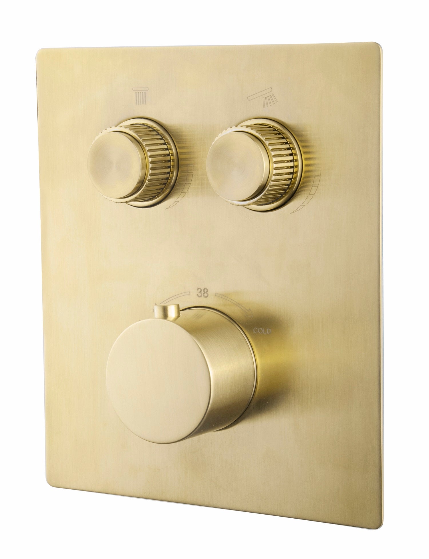 Caral Klik Pro 2-weg inbouwthermostaatafwerkingsset Wiesbaden in geborsteld messing