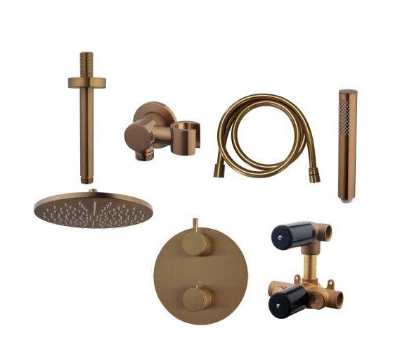 Caral Rond Plafonduitloop Inbouw Regendoucheset Wiesbaden in geborsteld bronskoper