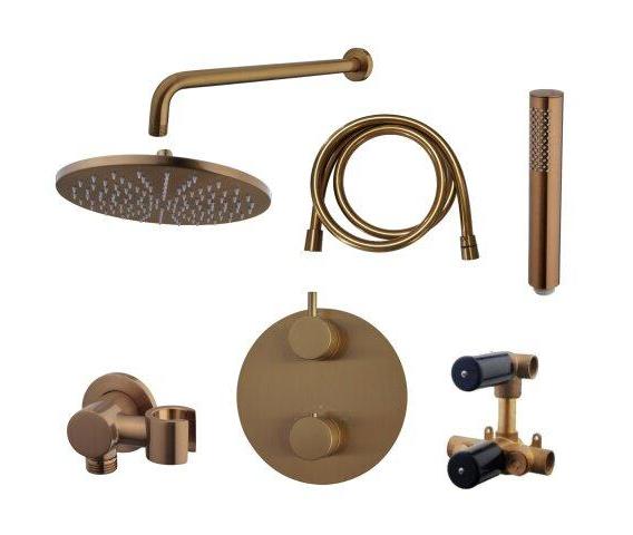 Specificaties Wiesbaden Inbouw Regendouche Set Caral Rond Muuruitloop Geborsteld Brons Koper