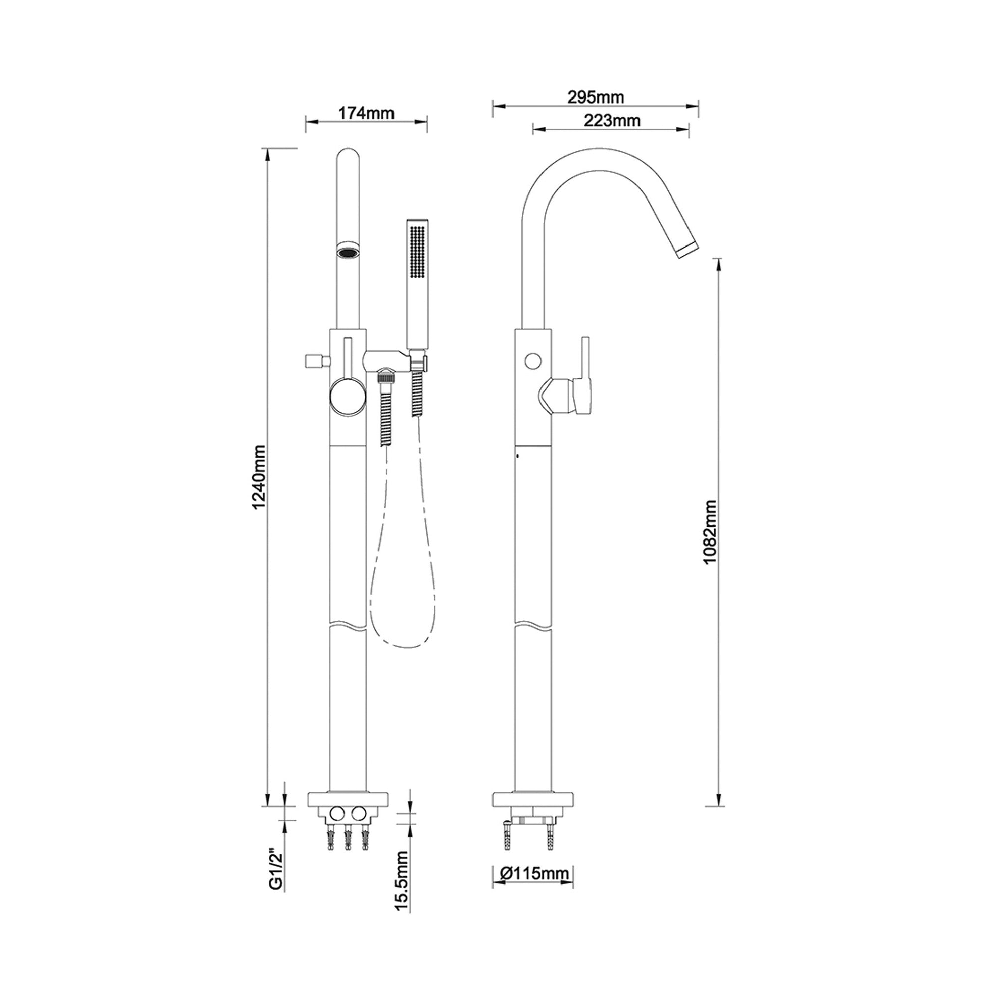 Caral vrijstaande badmengkraan Wiesbaden in geborsteld staal