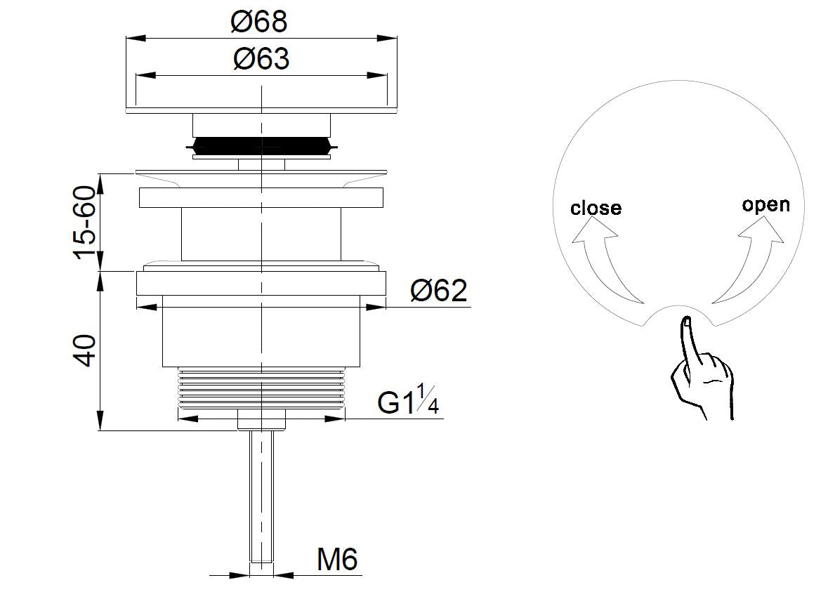 Flowe draaiwaste afvoerplug 5/4" chroom