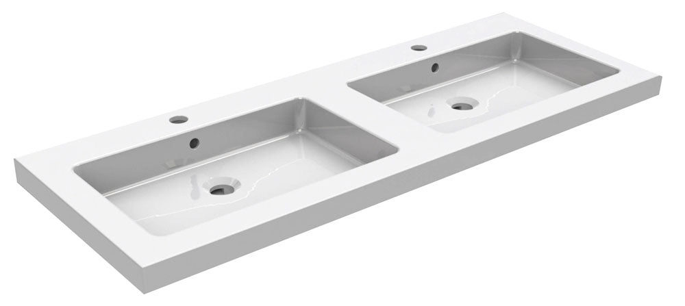 Kera wastafel dubbel met 2 kraangaten 120x46x5 cm keramiek glans wit