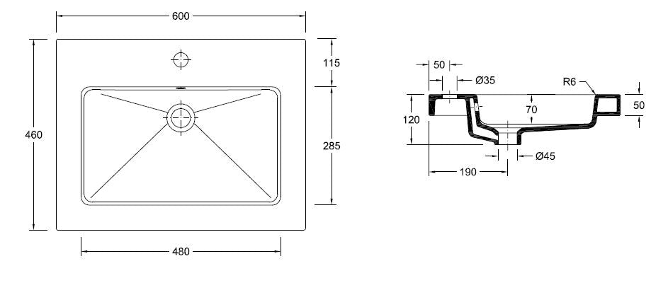 Kera wastafel enkel met 1 kraangat 60x46x5 cm keramiek glans wit