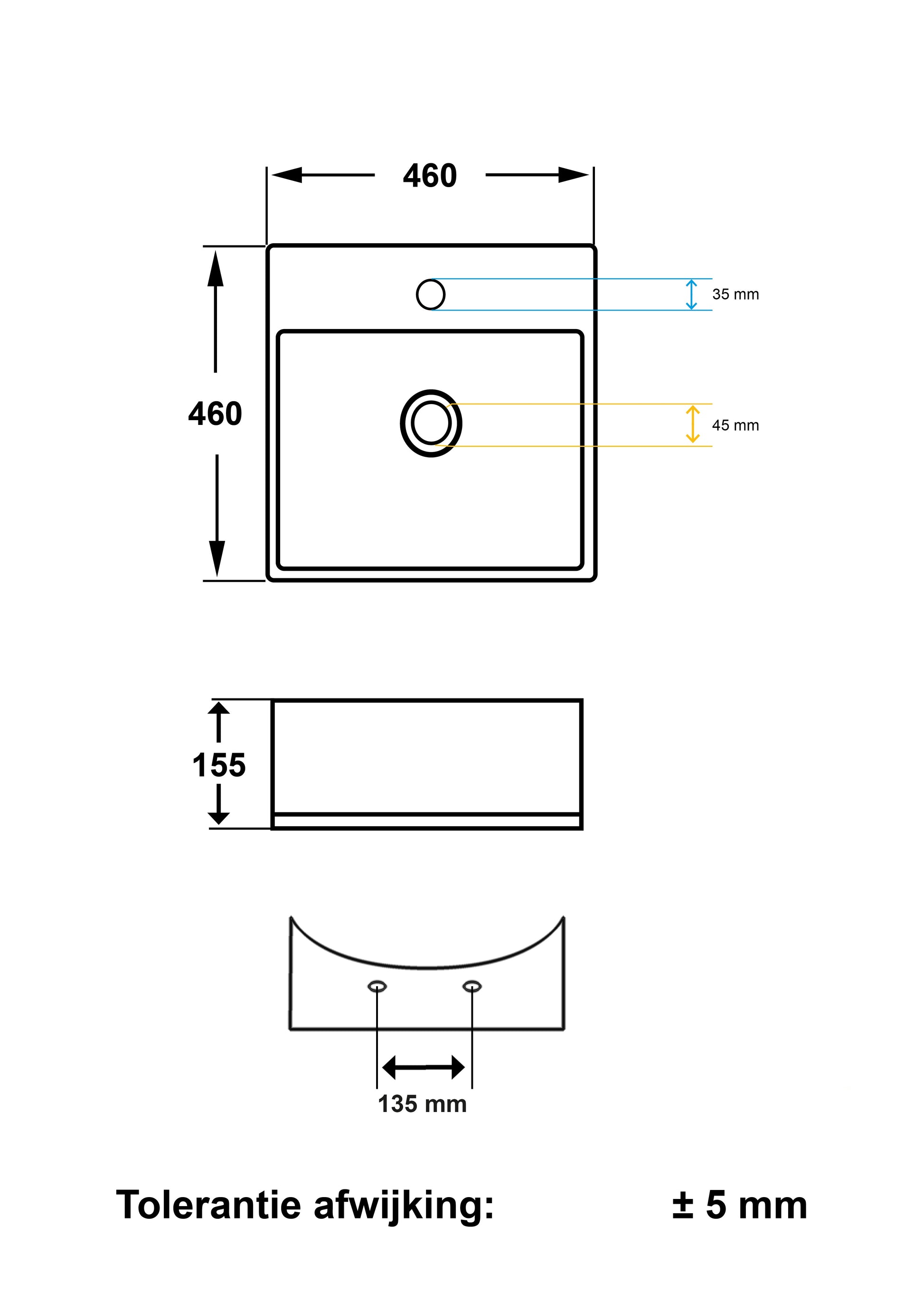 Larx waskom vierkant 46 x 46 x 16,5 cm keramiek glans wit