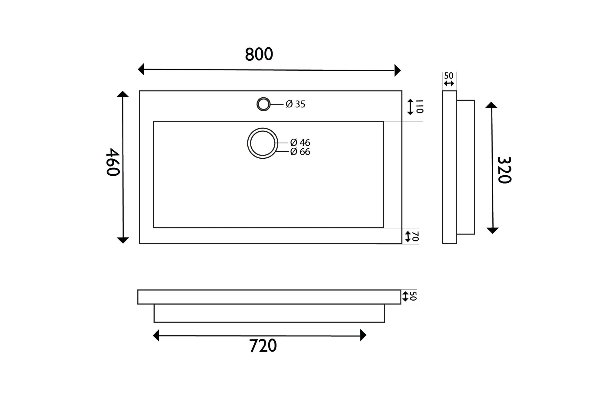 Raw wastafel enkel met 1 kraangat 80x46x5 cm hardsteen gezoet
