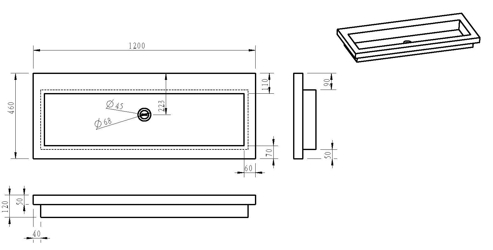 Raw wastafel enkel zonder kraangat 120x46x5 cm hardsteen gezoet