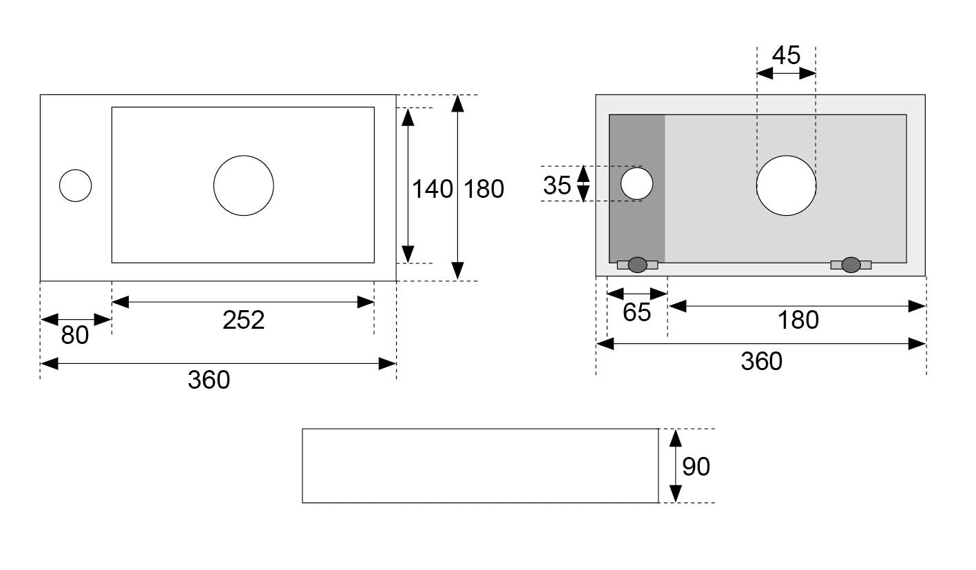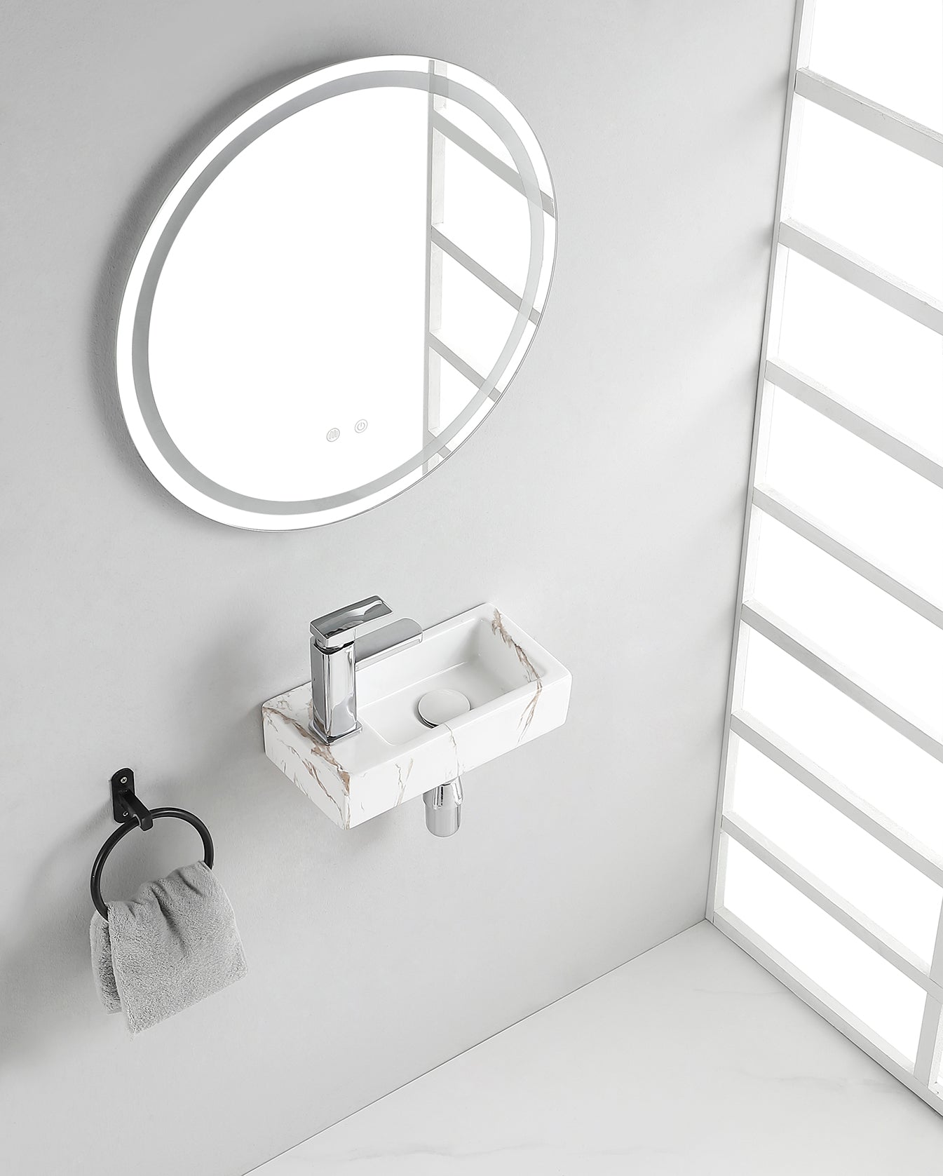 Rhea S mini fontein links 36,5 x 18 x 9 cm keramiek carrara