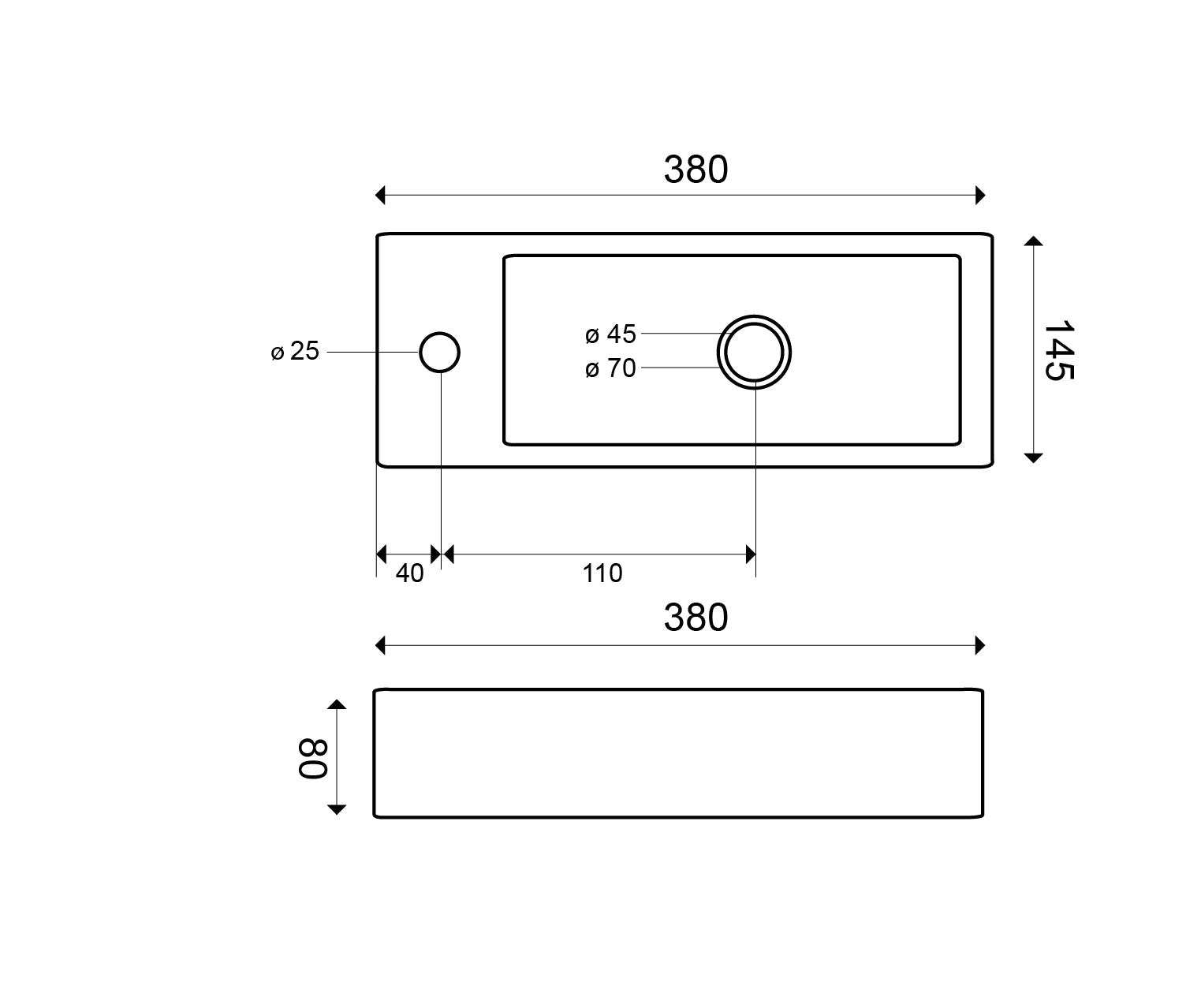 Trim mini fontein links 38 x 14 x 8 cm keramiek glans wit