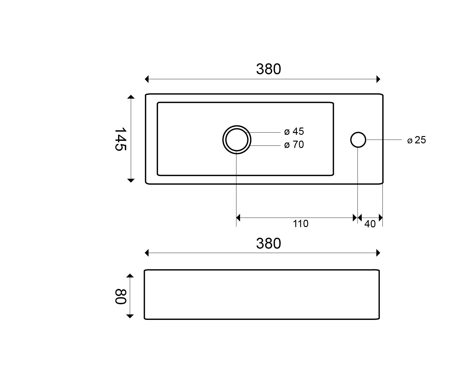 Trim mini fontein rechts 38 x 14 x 8 cm keramiek glans wit