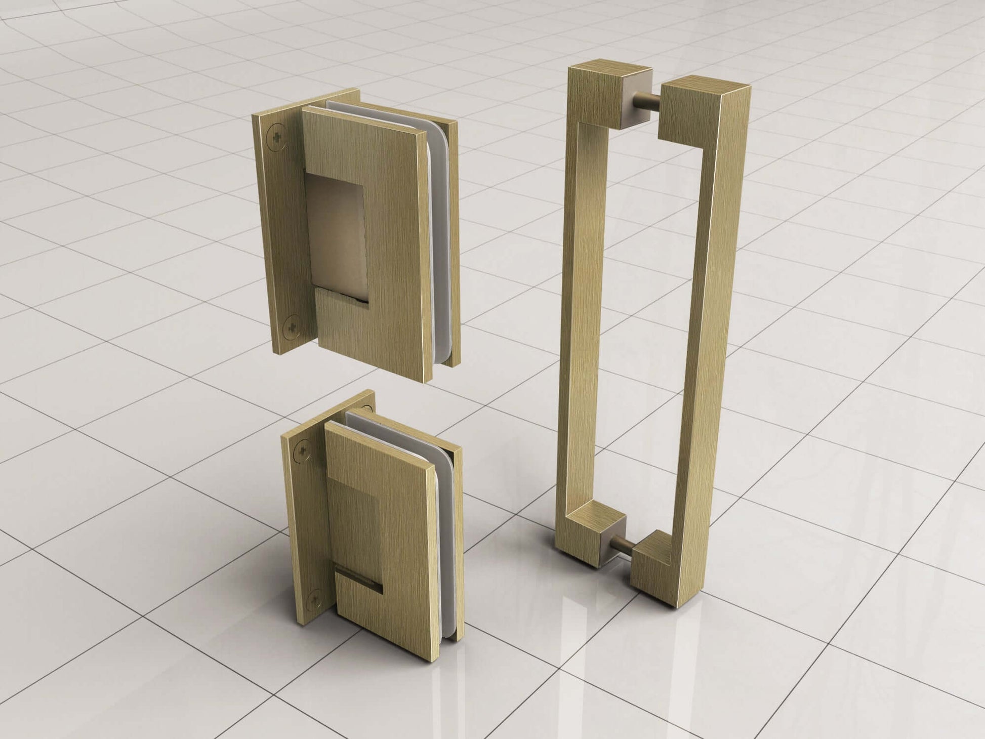 Profiellose Nischentürscharnierset und Handgriff Wiesbaden Minder gebürstetes Messing