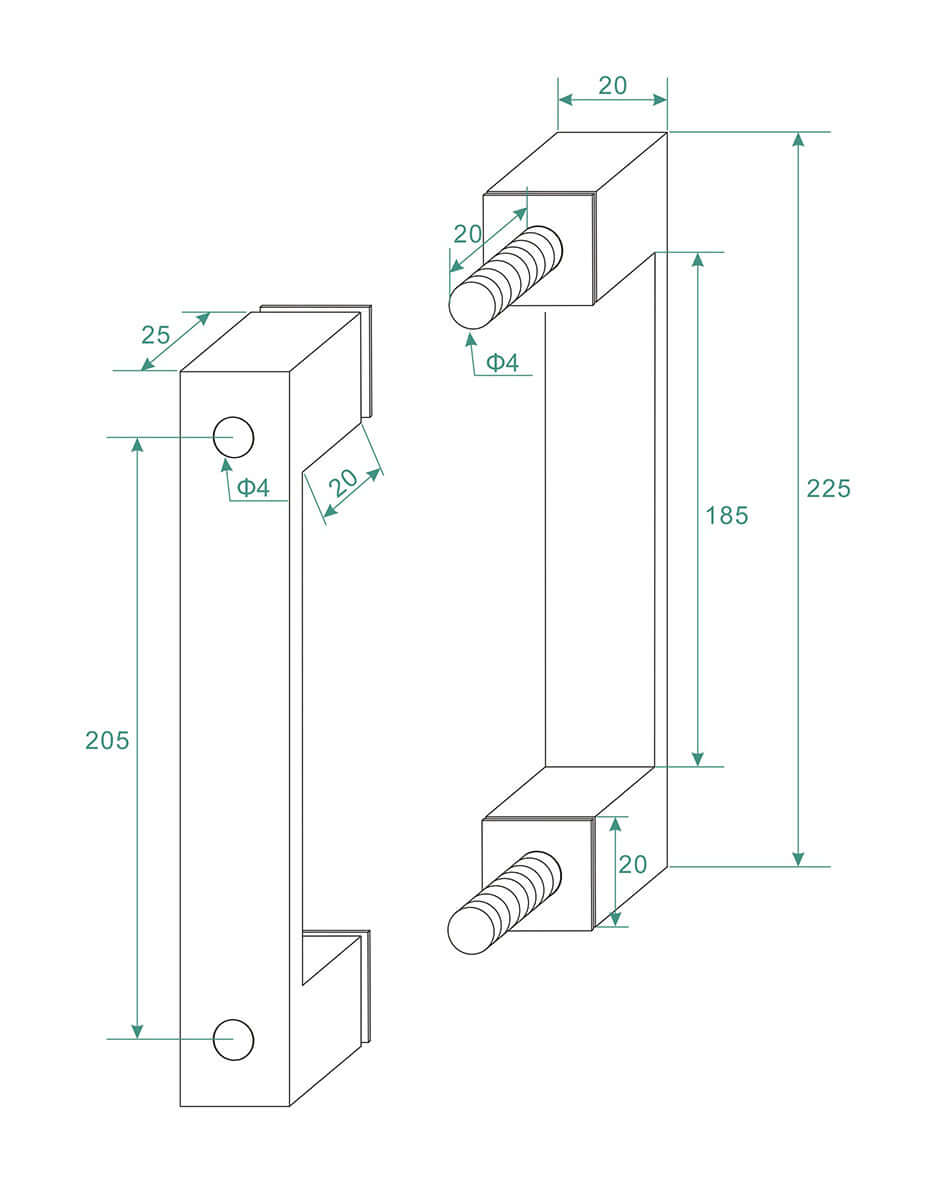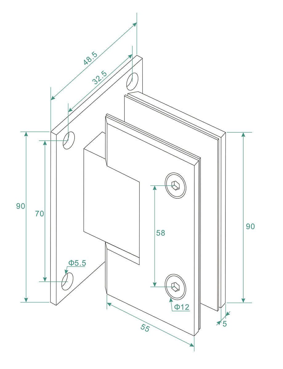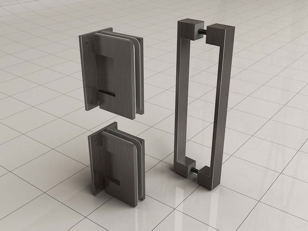 Scharnierset und Griff aus stahlgrau für rahmenlose Nischentür Wiesbaden Less