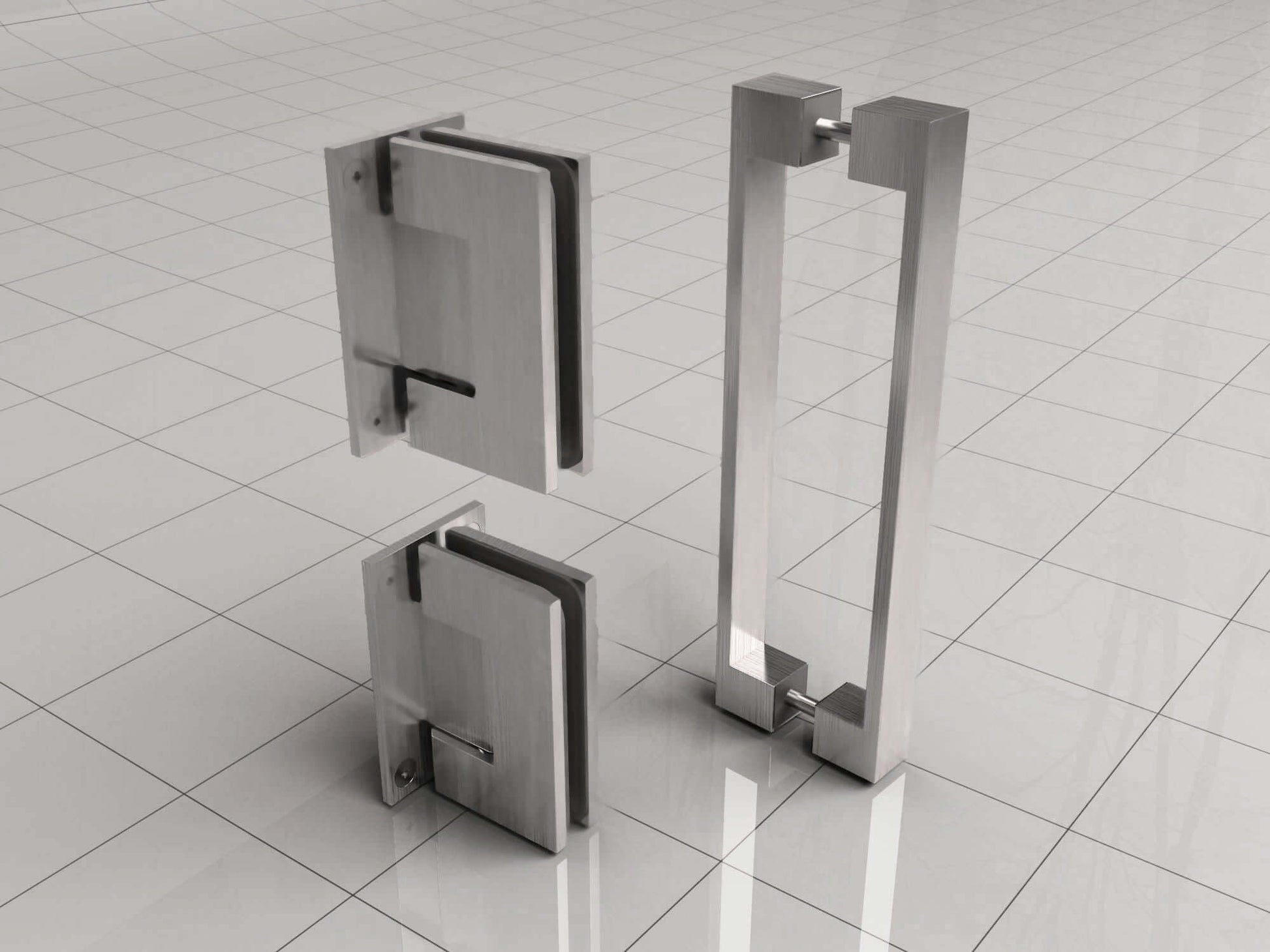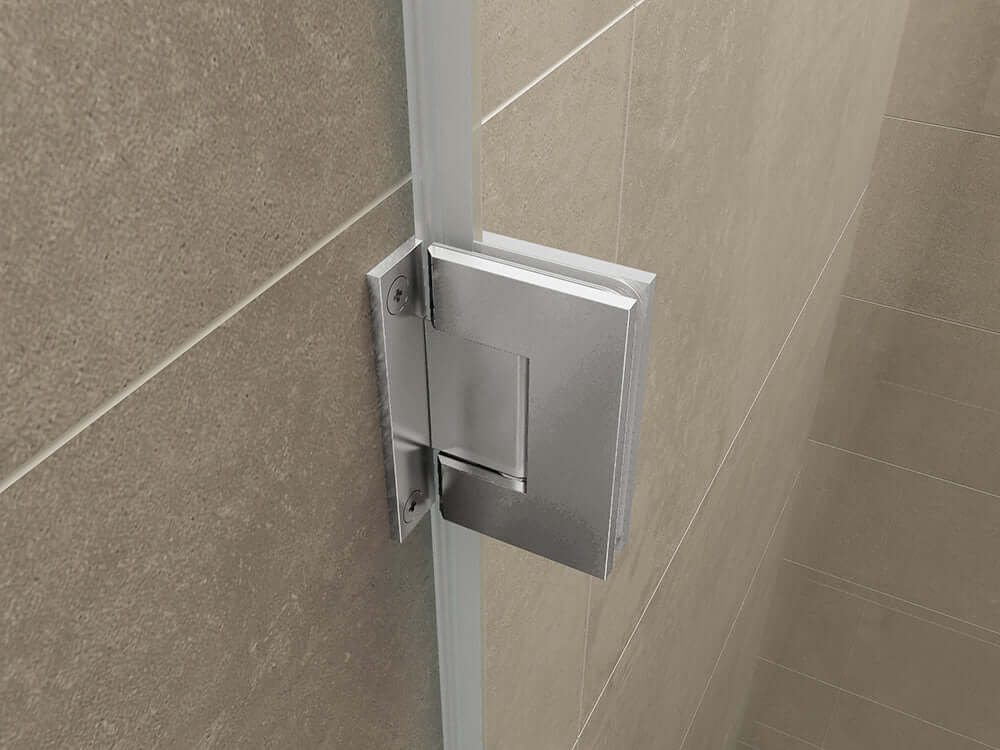 Scharnierset und Griff für rahmenlose Nischentür Wiesbaden Less in gebürstetem Stahl