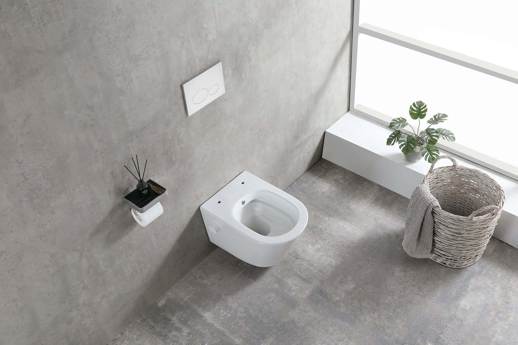 Vesta wandtoilet spülrandlos mit Bidetarmatur kaltes Wasser glänzend weiß
