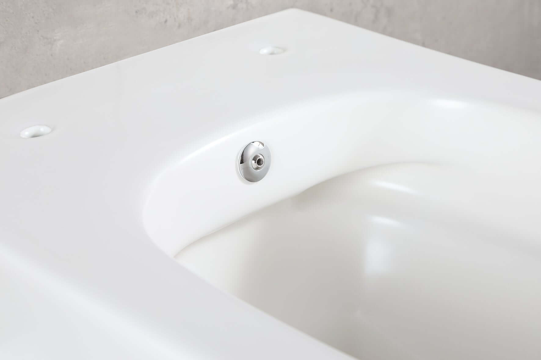 Erhältlich in mattschwarz, glänzendem Weiß und mattem Weiß, passt das Wand-WC mit Bidetarmatur perfekt zu jedem Einrichtungsstil.
