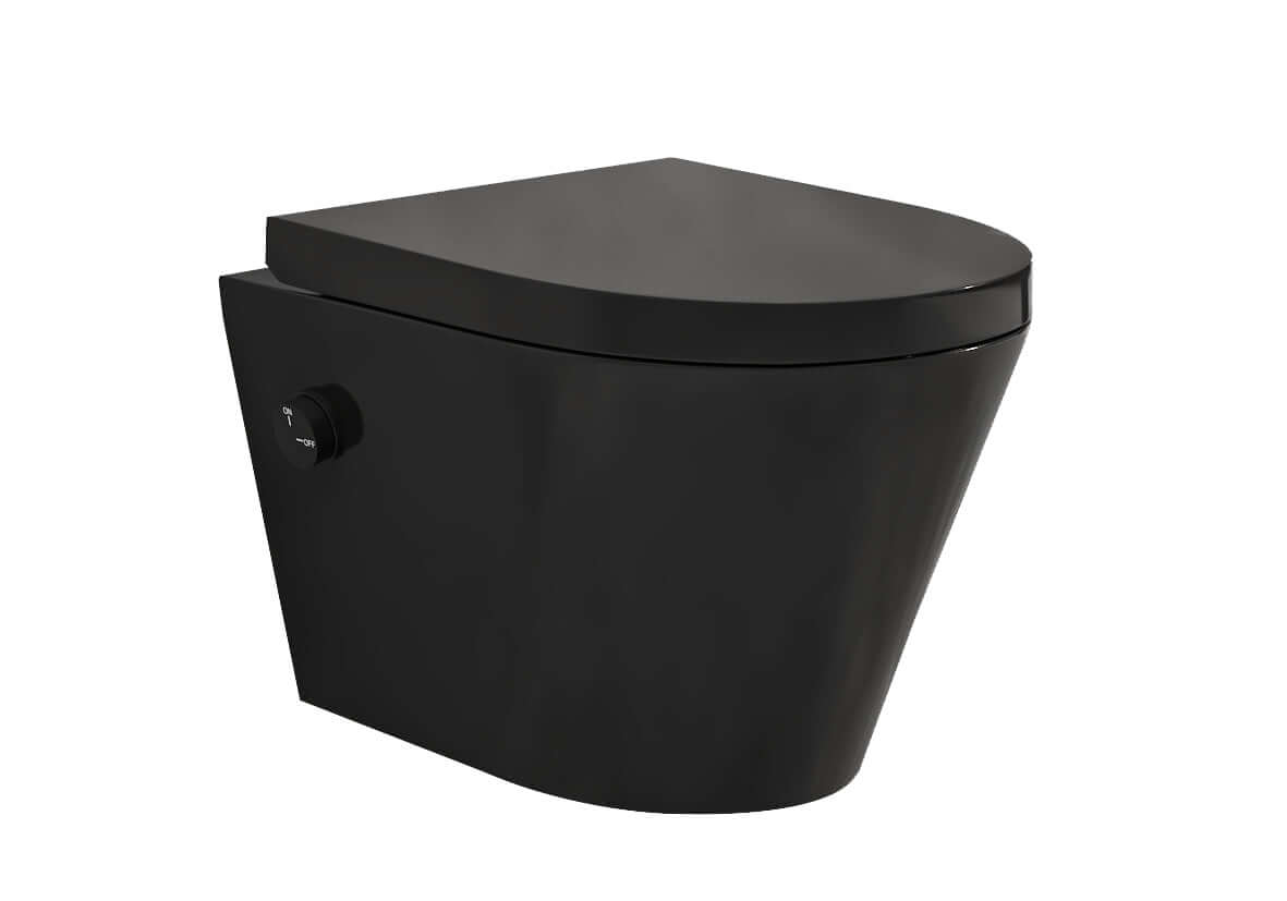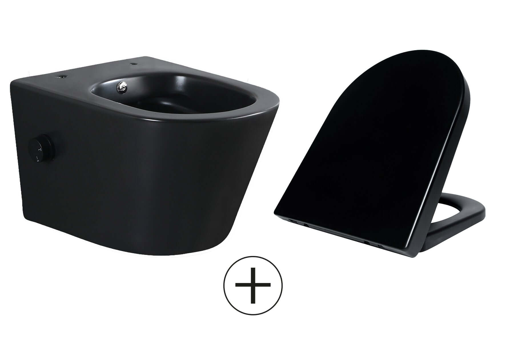 Vesta wandtoilet randlos mit Bidetarmatur kaltes Wasser mit Vesta Toilettensitz matt schwarz