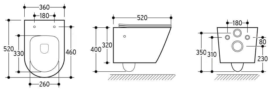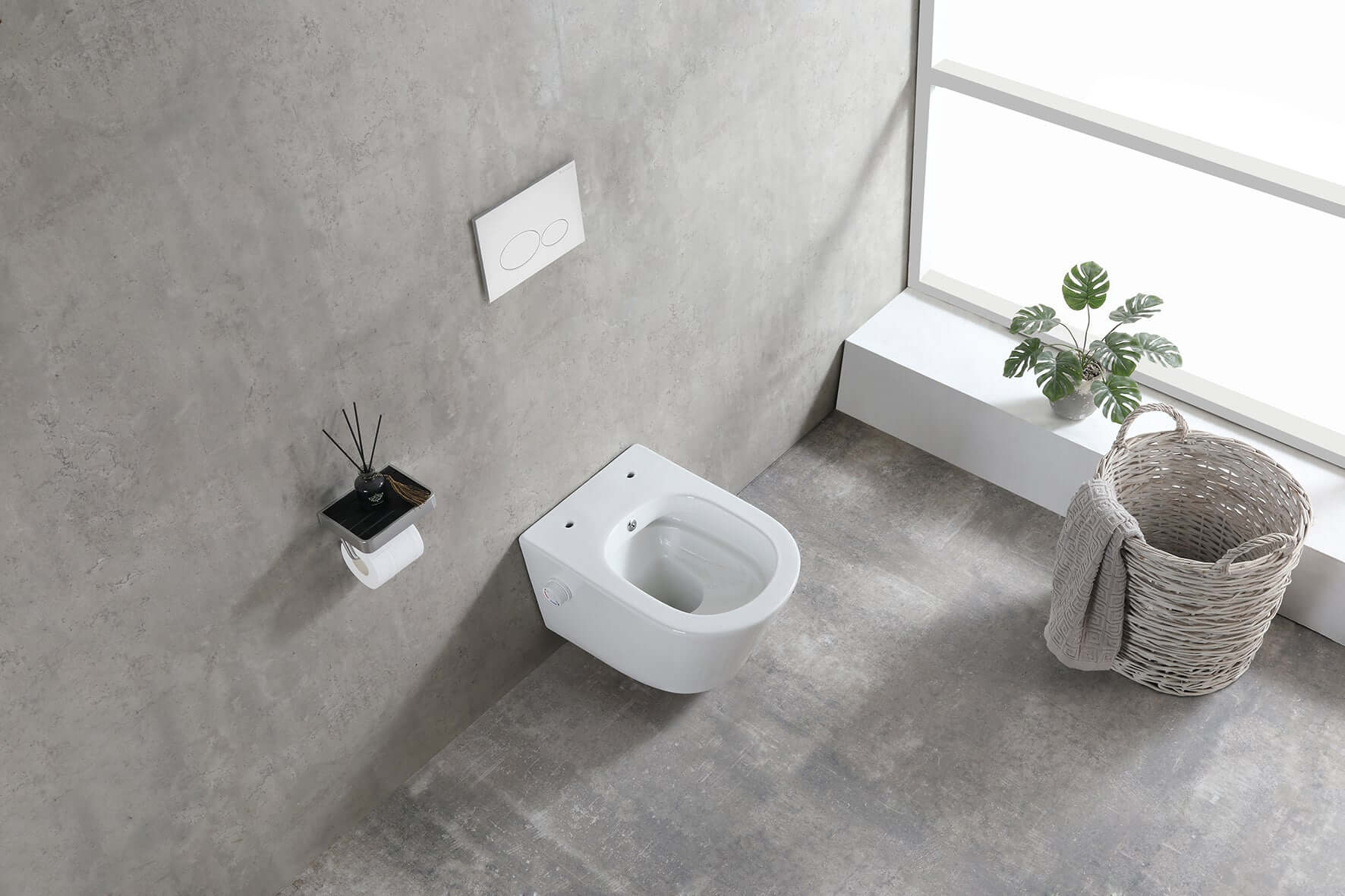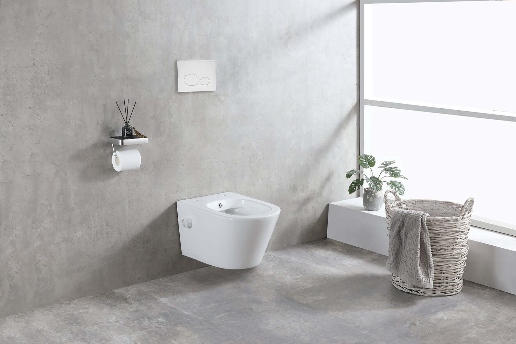 Vesta wandtoilet randlos mit Bidetarmatur warm und kalt Wasser glänzend weiß