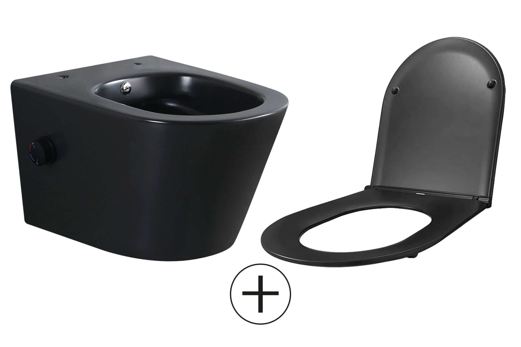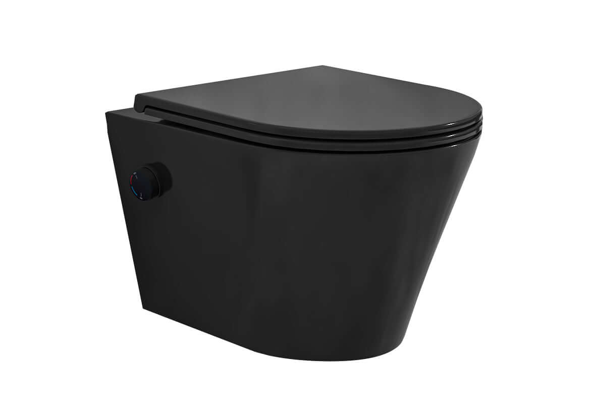 Vesta wandcloset rimless met bidetkraan warm koud water met Flatline toiletzitting