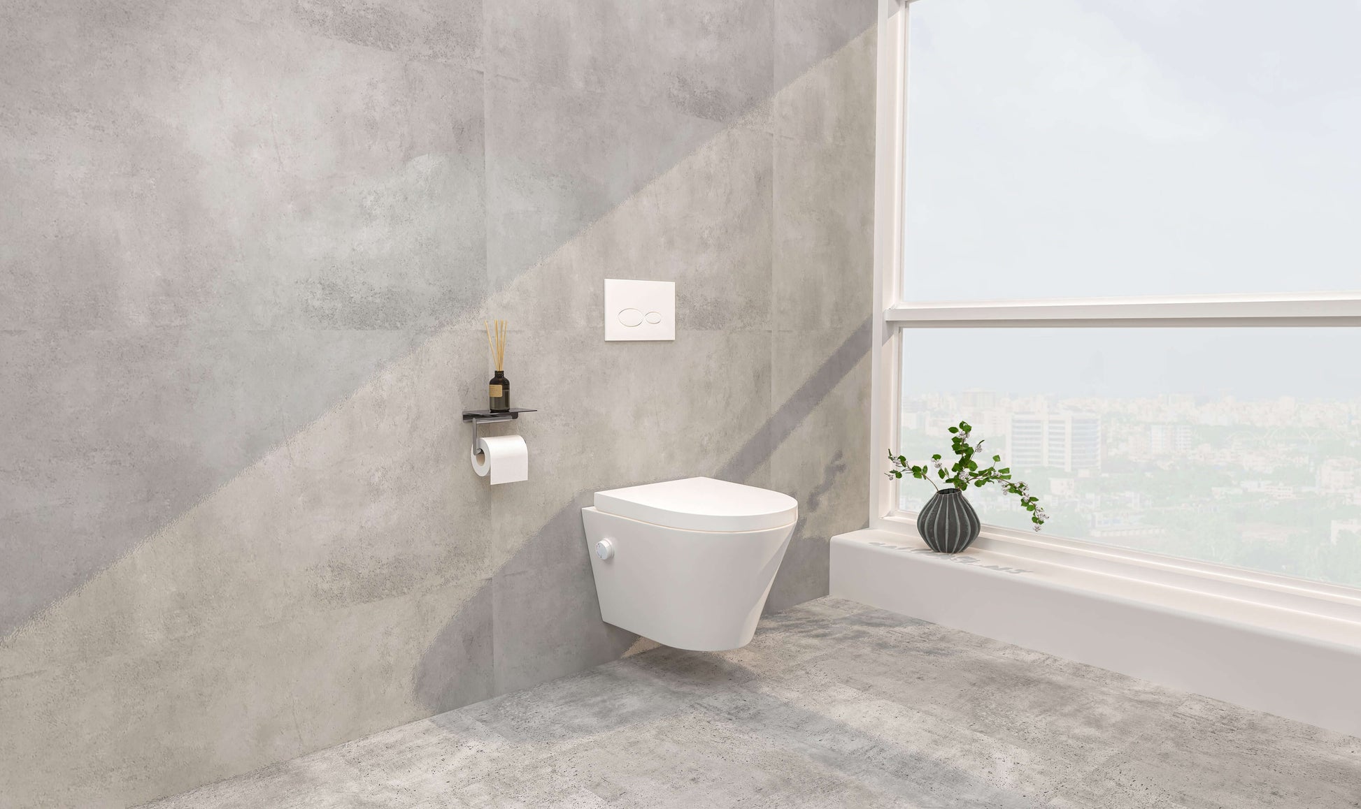 Vesta wandtoilette randlos mit Bidetarmatur warm kalt Wasser mit Vesta Toilettensitz matt weiß