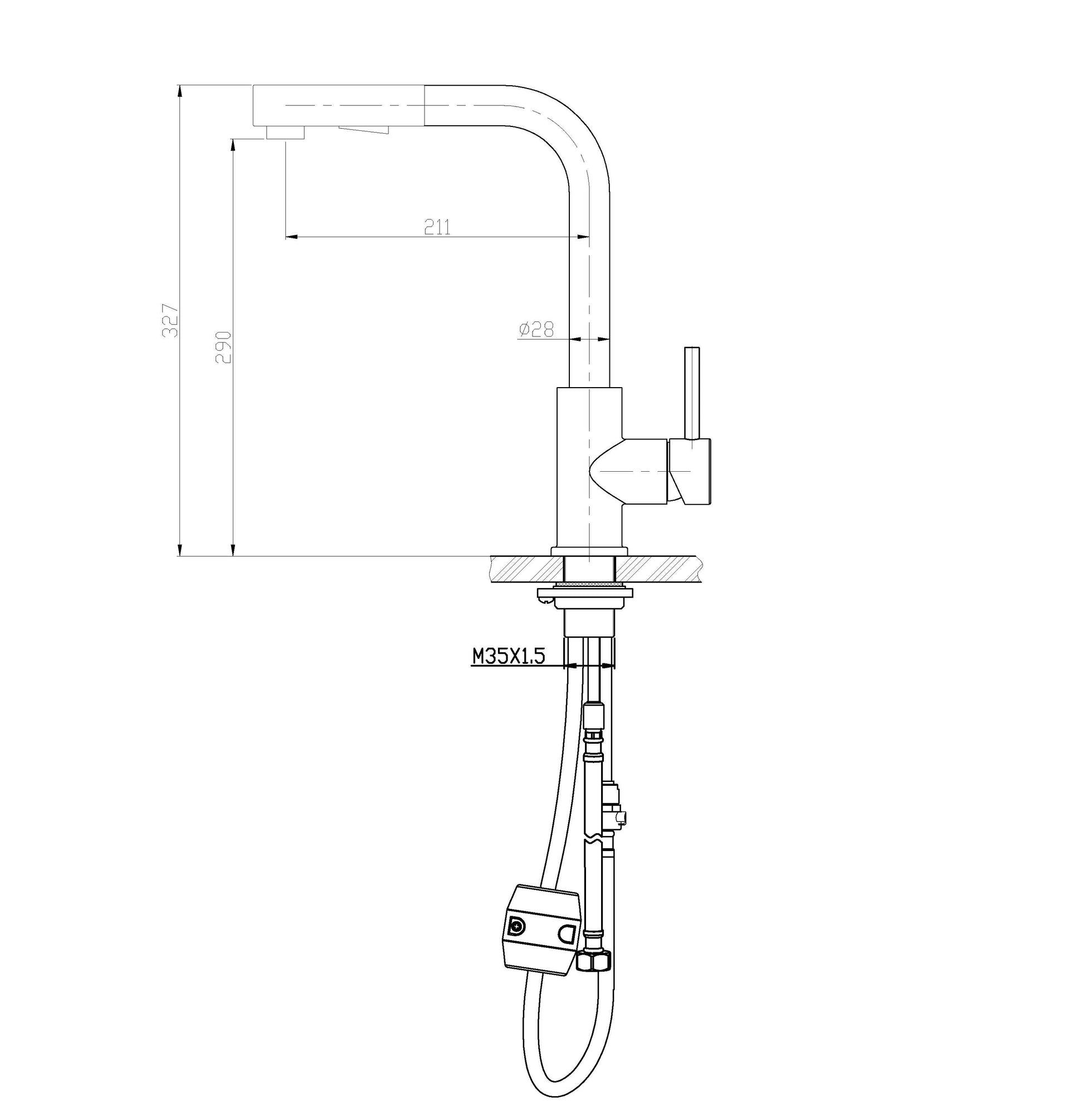 304-Reno Twenty RVS Küchenarmatur + ausziehbare Handbrause
