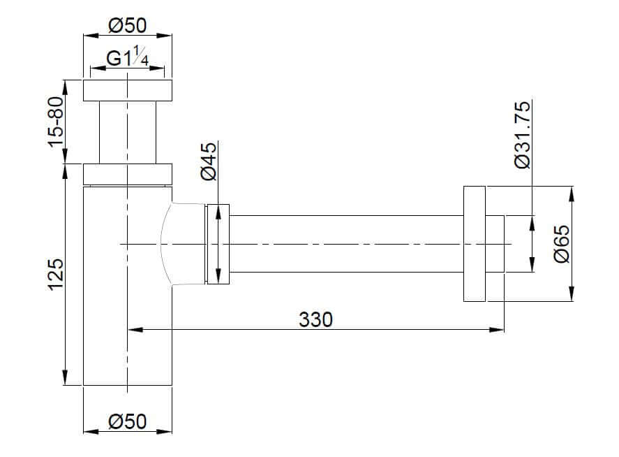 UniMatch wastafelsifon 5/4" x 32 mm