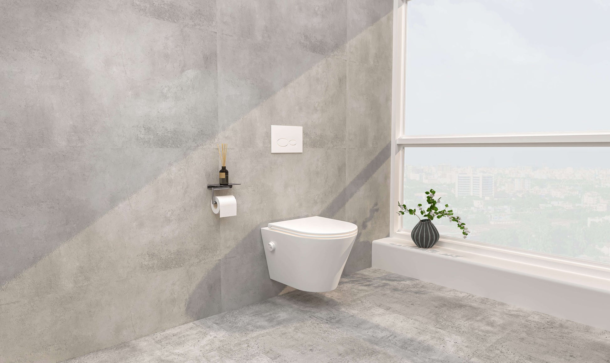 Vesta wandcloset randlos mit Bidetarmatur kaltes Wasser mit Flatline Toilettensitz matt weiß