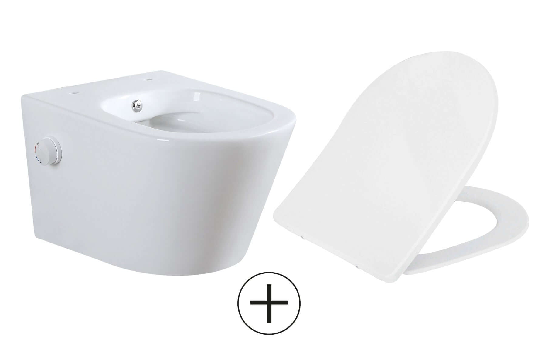 Vesta wandcloset randlos mit Bidetarmatur warm kalt Wasser mit Shade schlanke Toilettensitz glänzend weiß