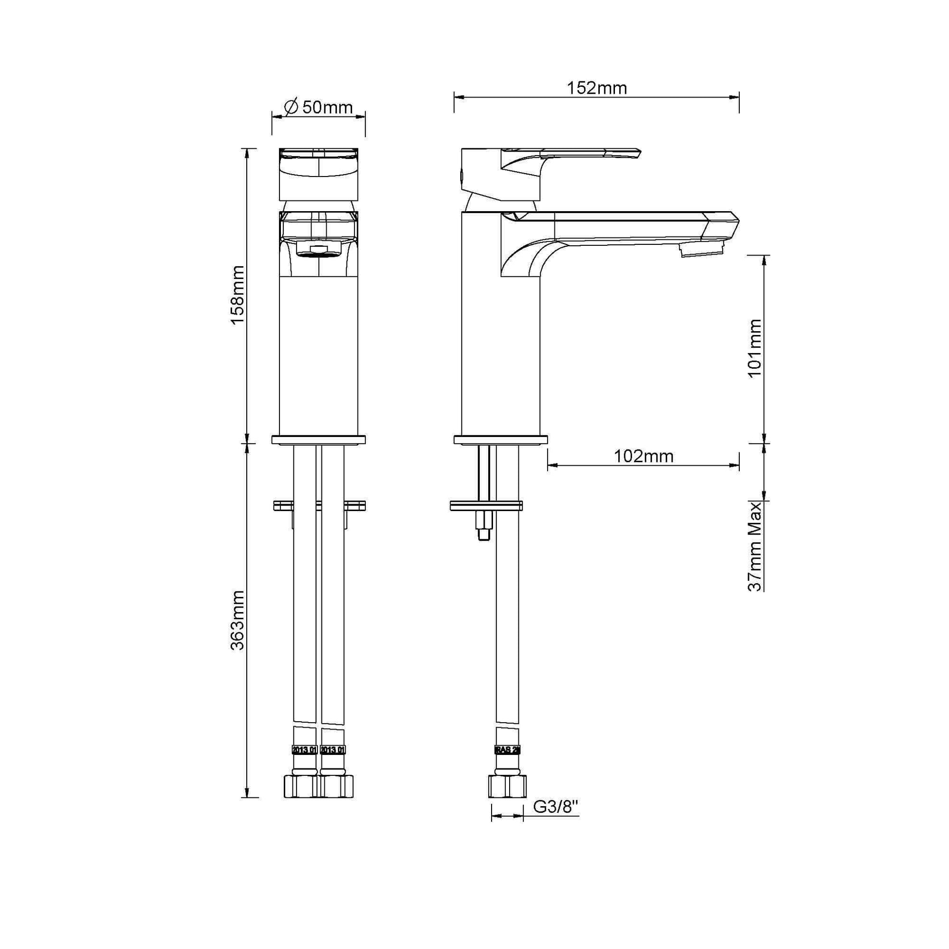 Spécifications du robinet de lavabo Wiesbaden | Trop | Noir Mat