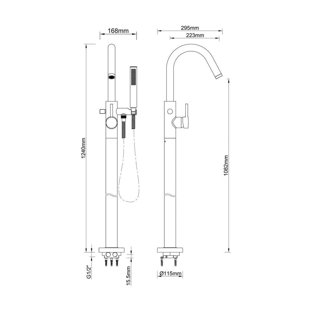 Robinet de baignoire Caral autoportant bronze brossé cuivre PVD