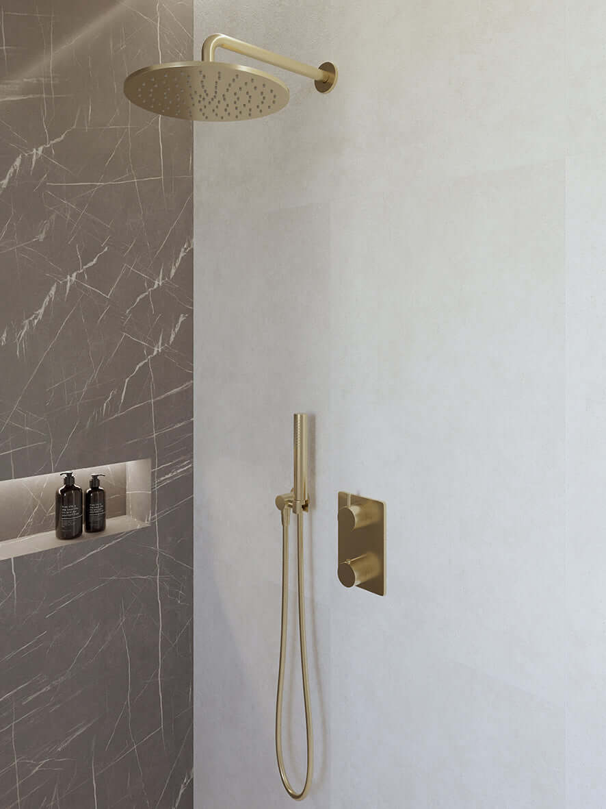 Caral thermostat encastré complet avec douche de tête 30 cm et douchette à main en laiton brossé