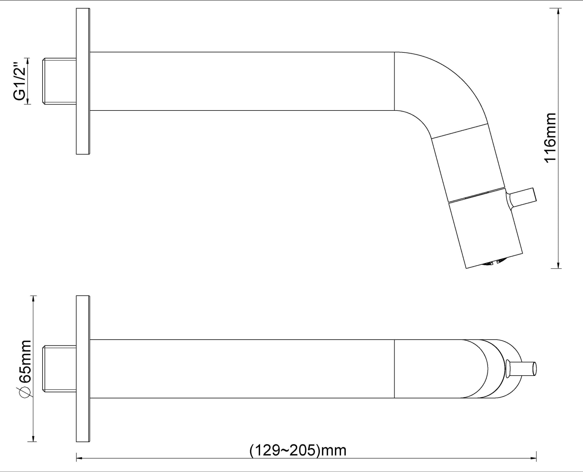 Caral Sophia robinet de fontaine raccourcissable avec fixation murale 1/2" mat noir