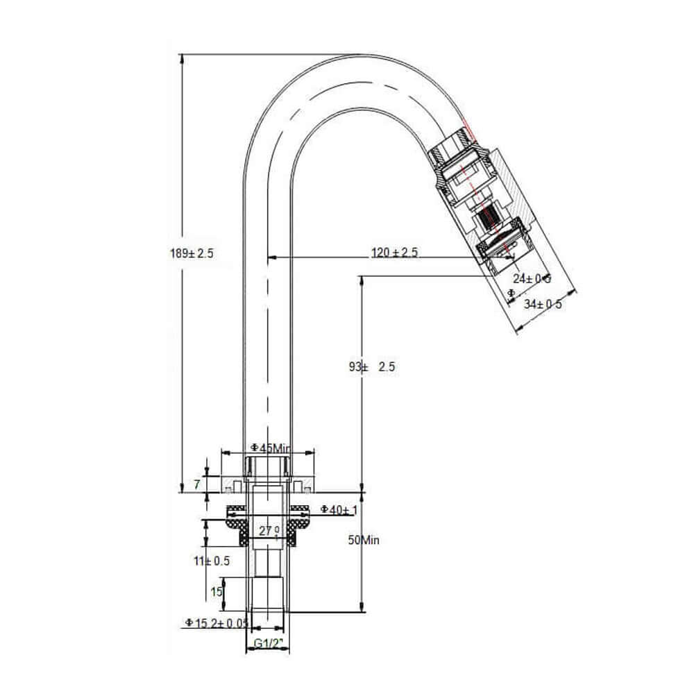 Robinet de toilette très luxueux et moderne avec un aérateur comme commande.