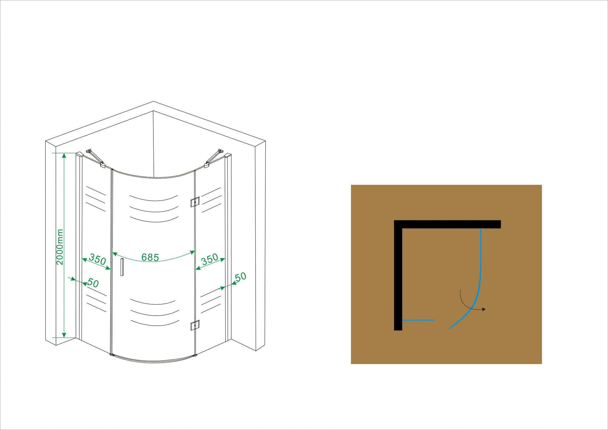Convient pour les receveurs de douche avec un rayon de 550 mm