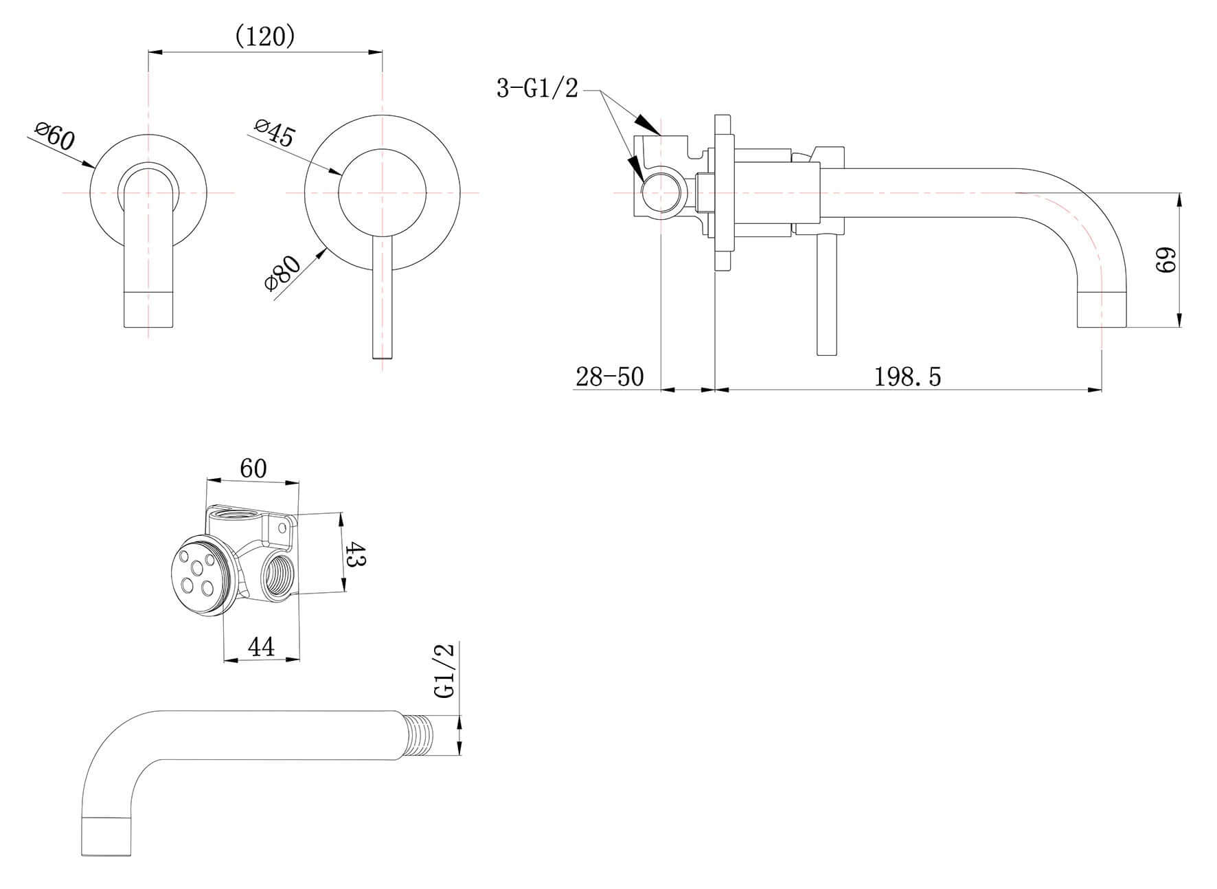 304 wastafelkraan met coldstart inbouw compleet geborsteld RVS