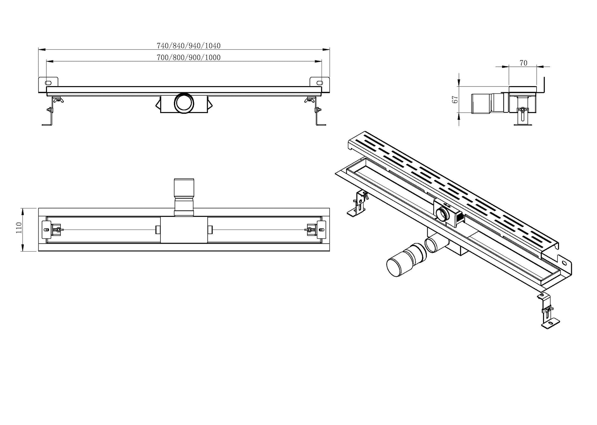 3e generatie douchegoot met muurflens en rooster 80 x 7 cm RVS