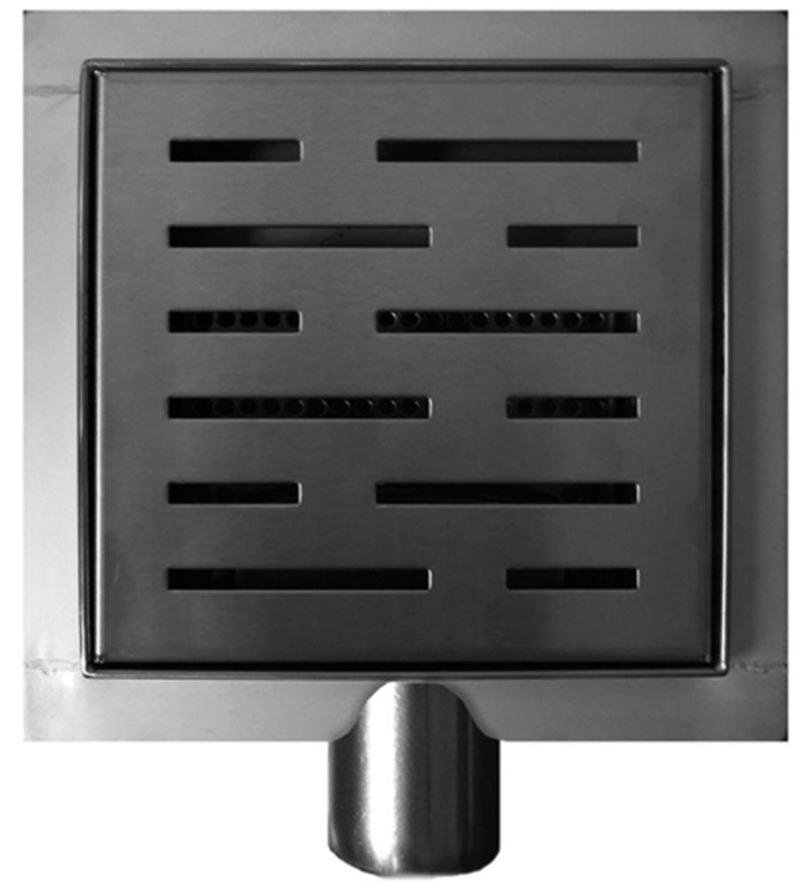3e generatie doucheput met flens en zijuitlaat 15 x 15 cm RVS