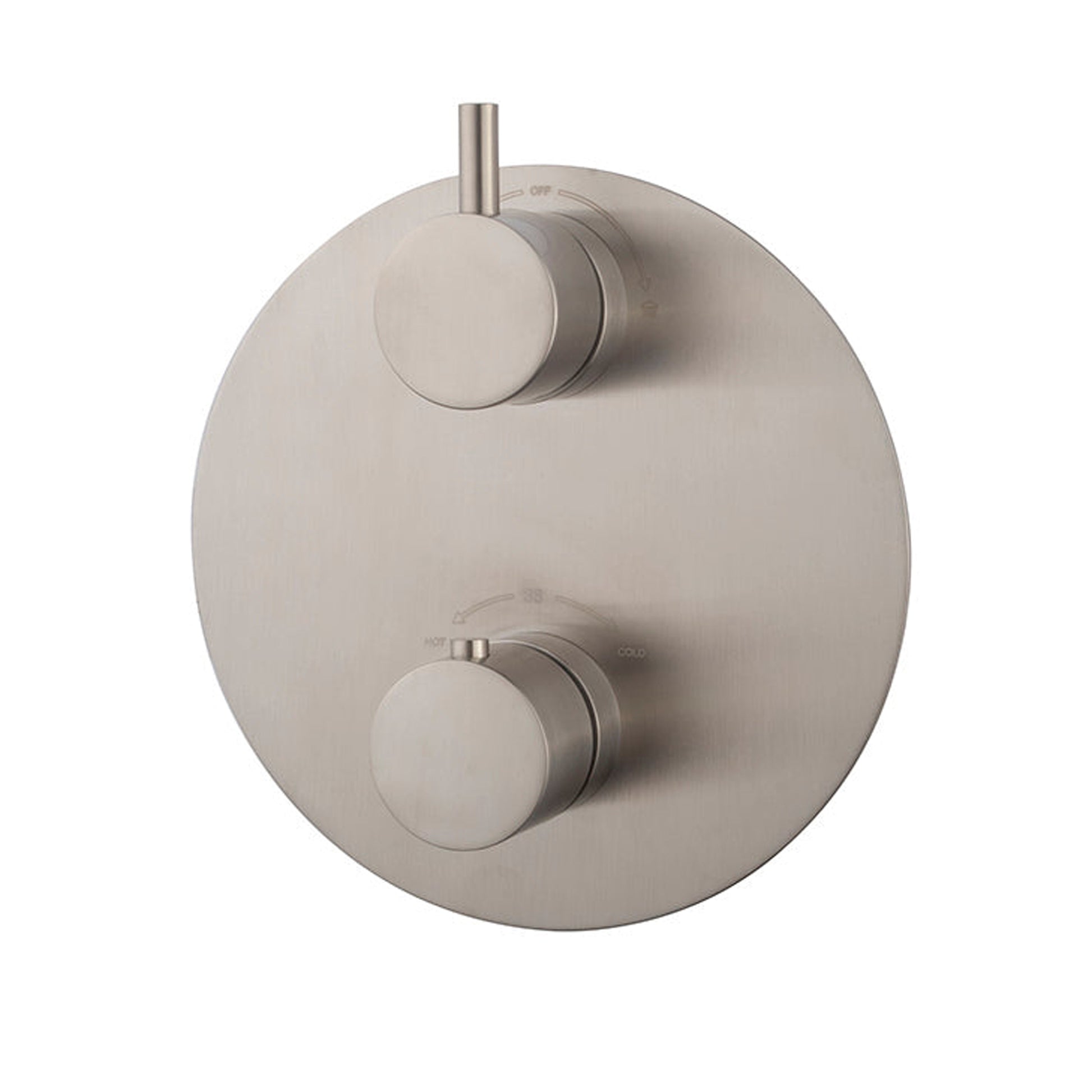 Caral afbouwdeel rond inbouwthermostaat 2 weg geborsteld staal PVD