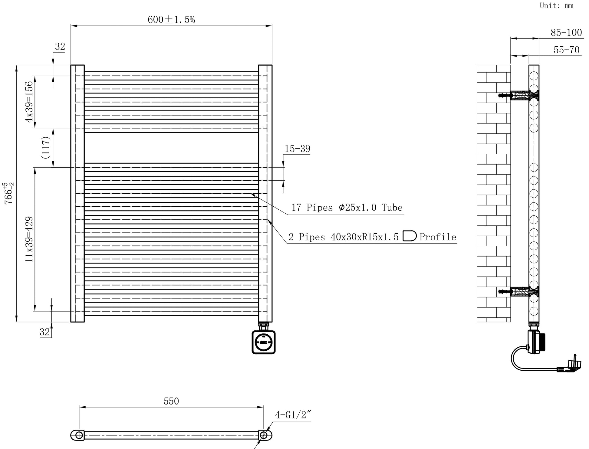 Elara Elektrische Radiator Wiesbaden 76,6X60 Cm, Smart Wifi in matzwart