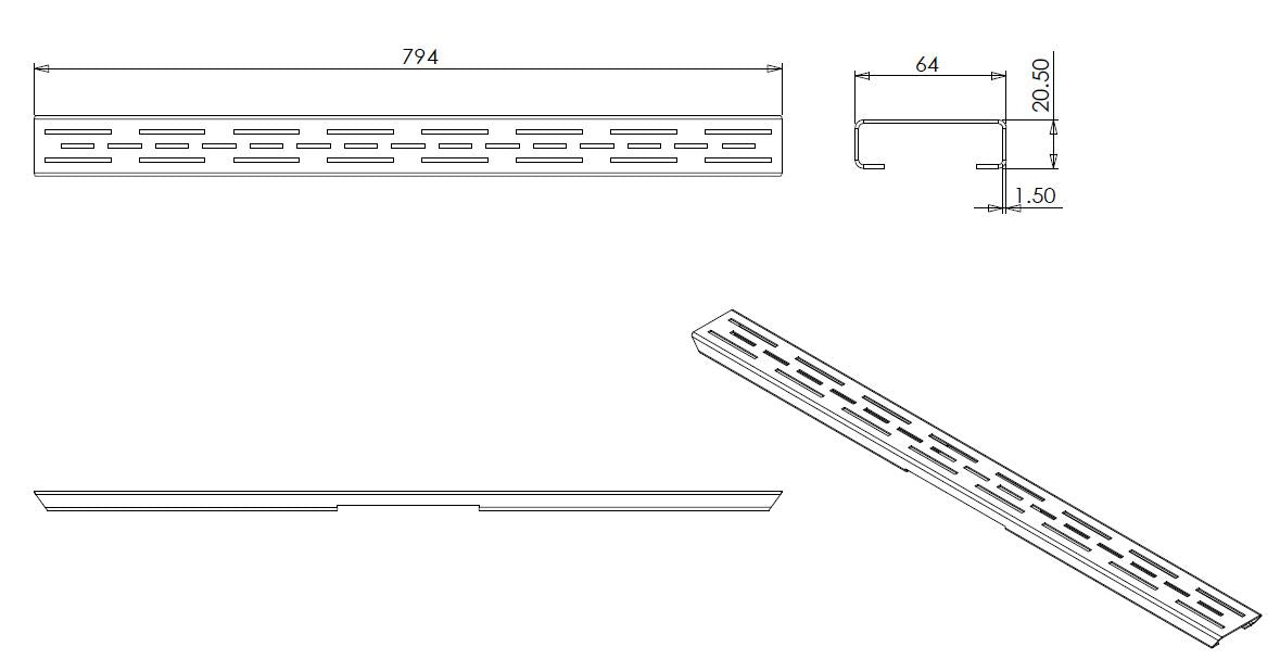 Los Standaard Rooster Wiesbaden voor 3e Generatie Douchegoot 80 cm Mat Zwart